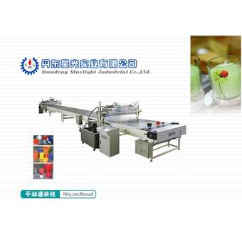 Automaticly place containers, transfer, pre-heating, filling, surface smoothing, and cooling.